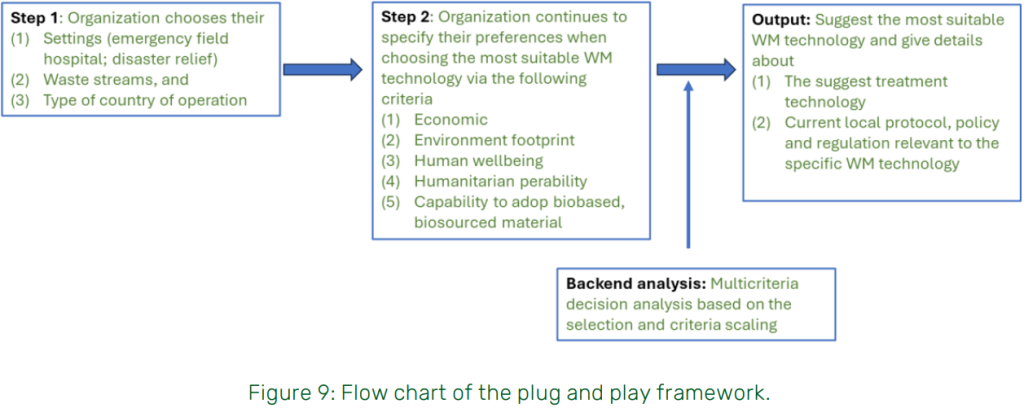 By combining structured decision-making with local partnerships, the plug and play framework helps humanitarian organisations deploy more sustainable, context-appropriate, and resilient medical waste management strategies.